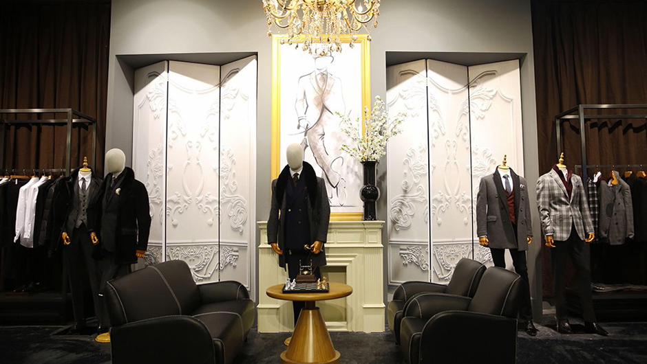 據(jù)了解,英國的薩維爾街被稱為“紳士殿堂”,這里保存著傳統(tǒng)的男裝定制工藝,并且有著可以稱得上是世界上最專業(yè)的裁縫。本次杉杉服裝展館的設(shè)計(jì)以全球男裝定制圣地——薩維爾街頂級(jí)定制店為靈感概念,不僅重現(xiàn)200多年歷史的西服定制藝術(shù)與紳士生活形態(tài),更是以具象化的形式強(qiáng)化了消費(fèi)者對(duì)杉杉新時(shí)代風(fēng)度男裝理念的理解