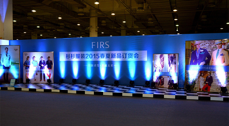 俗話說,人靠衣裝美靠靚裝,而本次訂貨會的主題選擇即與此相關,灰色絨面地毯、藍色格調的形象墻、棋盤格舞臺以及兩兩錯落相對的展廳,作為國內老牌知名品牌,杉杉服裝通過這些精致布局向市場傳遞出自己的另一面——年輕、時尚、流行。