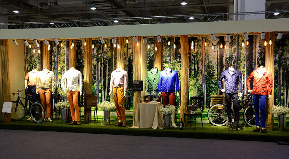 在寧波國際會展中心8號展館,現場的華麗櫥窗設計,以一個個主題、故事為背景,更細膩的展示了杉杉服裝從2014秋冬到2015年的產品的個性轉變,清新休閑的春夏裝,時尚靚麗的秋冬裝,不斷吸引著來自全國各地的加盟商的目光。